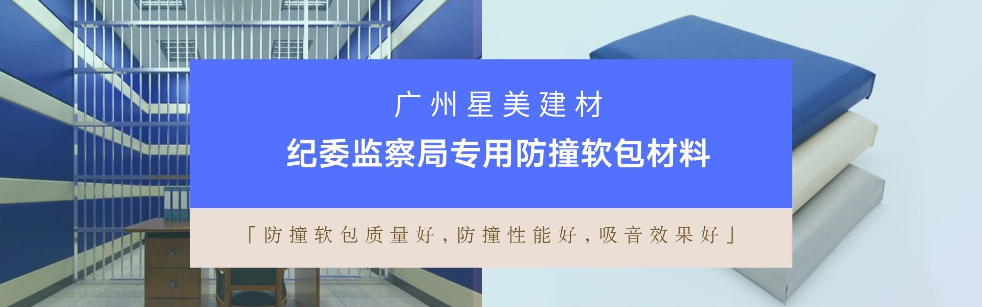 廣州星美建材專業(yè)研發(fā)生產(chǎn)銷售墻面防撞軟包材料,用于紀(jì)檢委談話室、詢問(wèn)室、執(zhí)法辦案區(qū)、公安局審訊室、派出所辦案區(qū)、檢察院訊問(wèn)室、看守所…